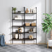 Theo bookcase dresses up any space with understated glamour and sophistication. Contrasting wood shelves with a black metal edge. with five shelves offering substantial storage in a office. living space. bedroom and beyond. With just the right touch of metal and wood. this large-scale storage piece is a polished piece to show off your favorite books and decor pieces. Made of quality materials to ensure the product's structural integrity over time. Create complete modular wall unit by lining several bookcases up together on a wall.