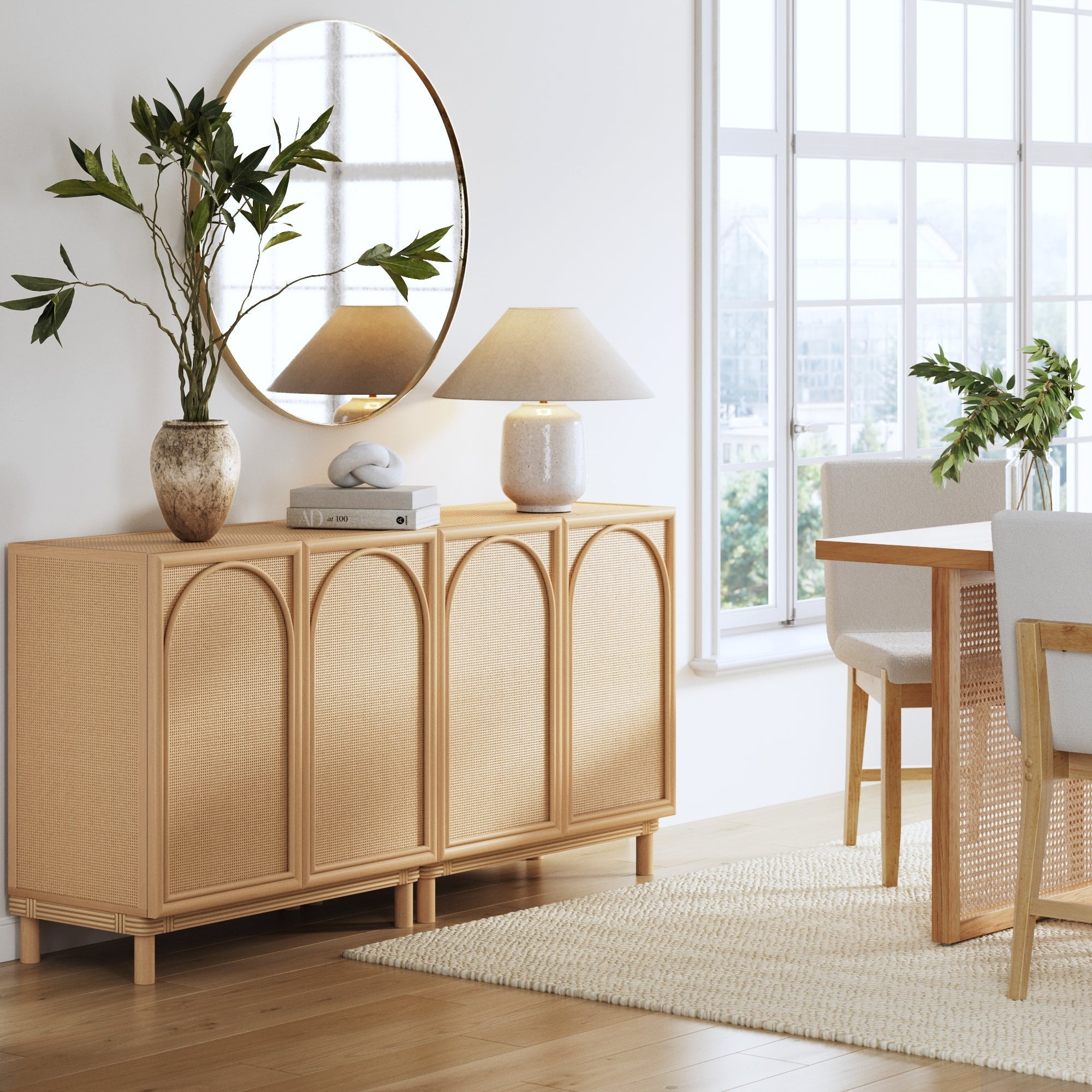 Boho Arched Storage Cabinet with Rattan Doors (Set of 2)