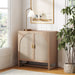 Introducing Paxton – a stylish storage solution with arched doors and natural rattan panels. The adjustable shelf and solid wood legs provide flexibility and durability. Multiple units sit flush side-by-side for a sleek look. Each piece is unique. showcasing natural wood and rattan variations.
