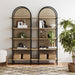 Get ready to fall head over heels for the Amara Bookshelf—the epitome of boho elegance! Constructed with love. this bookshelf features a sleek metal frame with an eye-catching geometric arch design in a trendy black finish. Its five thick shelves are perfect for showcasing your cherished books and adding a personal touch to your space. The back panel is crafted with on-trend durable textilene rattan. infusing your room with that irresistible boho vibe. Safety is a priority too. as we include a tip restraint kit to keep your bookshelf securely anchored to the wall. Let our Amara Bookshelf be the answer to your home's storage and style needs!