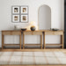 Boasting a chic bohemian style. our Beacon Console table has a neutral wire-brushed light brown finish and rounded legs that instantly elevate the room. This sturdy console table adds an inviting touch to your entryway. living room. or hallway and is the perfect landing spot for your phone. keys. or that expensive candle no one's allowed to light. The top shelf is great for books. a table lamp. or an accent mirror. while the woven seagrass lower shelf or matching drawers can hold toys. books. or other odds and ends.