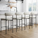 Meet Dahlia. We paired a comfortable cushioned seat with a cushioned back that's covered in a textured boucle linen weave for the ultimate bar stool experience. These wire frame stools were inspired by mid-century design and will provide an effortless touch to your kitchen or dining area. It has a slim profile to keep your space light and airy. while the matte black frame draws the eye to its durable footrest and made-to-last legs.