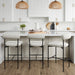 Meet Dahlia. We paired a comfortable cushioned seat with a cushioned back that's covered in a textured boucle linen weave for the ultimate bar stool experience. These wire frame stools were inspired by mid-century design and will provide an effortless touch to your kitchen or dining area. It has a slim profile to keep your space light and airy. while the matte black frame draws the eye to its durable footrest and made-to-last legs.