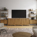 Transform your living space with the Jasper Entertainment Center. where style meets functionality! Featuring exquisite fluted door details and elegant tapered legs. this versatile piece effortlessly blends into any decor. The rich wood veneer and bright gold hardware add a touch of sophistication. while the solid wood bookshelf doors and sturdy interior supports ensure durability. When pushed together. the two storage cabinets and two bookshelves create a stunning focal point for your home entertainment setup. Plus. the secure wall mounting keeps everything safe and stable. so you can enjoy both beauty and peace of mind. Elevate your home with Jasper's blend of charm and practicality!