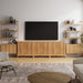 Meet the Jasper Entertainment Center—a stylish blend of function and flair for your living space. With fluted doors. tapered legs. and a rich wood grain finish. this combo brings a touch of warmth and elegance to your home. The real wood veneer and bright gold hardware add a luxurious touch. while the solid wood bookshelf doors and supports ensure durability. Plus. the bookshelves secure directly to the wall. keeping everything safe and sound. Jasper is the perfect companion for your entertainment needs!