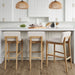 Kick your feet up in style with our Gracie bar height bar stool. With an exposed wood back and sleek modern design. Gracie is sure to stun. Gracie combines a warm pine wood finish and cream boucle cushion for ultimate comfort and style. It boasts a modern silhouette with tapered legs and a curved seat. making this bar stool the star of any kitchen. So grab your drink of choice and sit back in full comfort on these made-to-last bar stools.