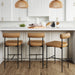 Meet Dahlia. We paired comfortable cushioned seats with cushioned backs covered in low maintenance vegan leather for the ultimate bar stool experience. This set of 2 wire frame stools were inspired by mid-century design and will provide an effortless touch to your kitchen or dining area. They have a slim profile to keep your space light and airy. while the matte black frames draw the eye to their durable footrests and made-to-last legs.