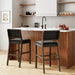 Grab your favorite drink and sit comfortably for hours on the Cohen bar stool. Cohen's solid wood frame has a hard wearing painted finish and is complemented by a brushed black leather back that adds sophistication to your kitchen. even when tucked and hidden under the counter. We even added a comfortable padded saddle seat with rounded corners and perfectly placed foot rests. If you take a closer look you'll see studs on the side of the chair—a detail too luxurious to miss! With an easy 25 minute assembly time. you won't regret grabbing more than one!