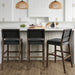 Grab your favorite drink and sit comfortably for hours on the Cohen bar stool. Cohen's solid wood frame has a hard wearing painted finish and is complemented by a brushed black leather back that adds sophistication to your kitchen. even when tucked and hidden under the counter. We even added a comfortable padded saddle seat with rounded corners and perfectly placed foot rests. If you take a closer look you'll see studs on the side of the chair—a detail too luxurious to miss! With an easy 25 minute assembly time. you won't regret grabbing more than one!