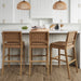 Grab your favorite drink and sit comfortably for hours on the Cohen bar stool. Cohen's solid wood frame has a hard wearing painted finish and is complemented by a woven light brown faux leather back that adds warmth to your kitchen. even when tucked and hidden under the counter. We even added a comfortable padded saddle seat with rounded corners and perfectly placed foot rests. If you take a closer look you'll see studs on the side of the chair—a detail too luxurious to miss! With an easy 25 minute assembly time. you won't regret grabbing more than one!