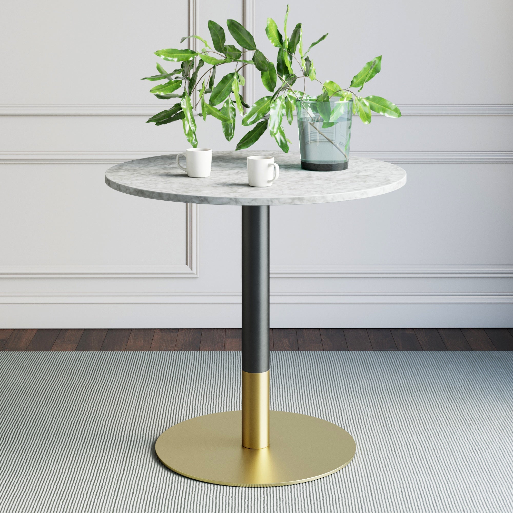 Designed for small dining areas to make you feel like you're in a Paris cafe. This anti-scratch faux carrara marble table is the perfect fit for a party of two. but if your game of Monopoly breaks loose. feel free to pull up another two seats. The table base is equipped with a weight in the base making the dreaded wobble table a thing of the past. Style with a fresh basket of croissants and freshly squeezed juice for the ultimate experience.