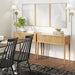 The perfect place for your entryway essentials. Meet Jasper! Jasper features two fluted drawer fronts and tapered legs in a natural brown finish that balances the sleek profile. This mid-century modern console table effortlessly blends beauty with functionality. The front drawers boast simple and stunning brass color handles that open to reveal deep storage to help keep your items organized. Use it in the living room behind a sofa. in an entryway under an oversized mirror or in the dining room next to your stocked bar cart - this console table will be sure to make a statement in your home.
