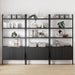 Mid-Century Fluted Wall Bookshelves with Doors Black (Set of 3)