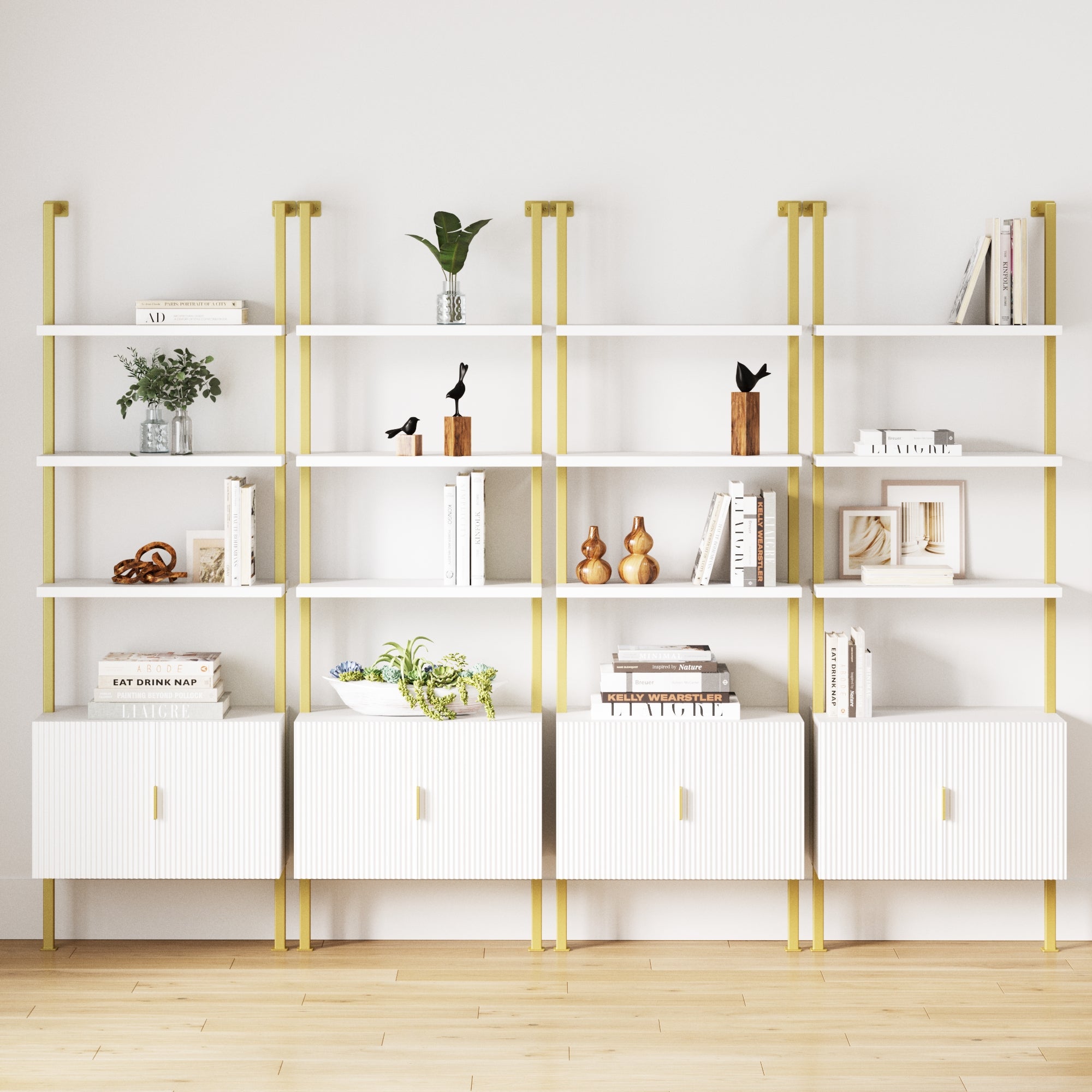 If you looked up “Mid-Century Bookcase” in the dictionary. you'd find Jacklyn there. Jacklyn features fluted cabinet drawer fronts with 3 floating shelves that's spacious enough to hold books. electronics or decor. But our favorite feature is the brass legs with detailed wall/floor mount that adds a *chef's kiss* to this piece's beautiful silhouette.