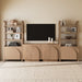 Create the perfect setting for cozy nights in with the Iris Mid-Century Modern Arched Wood Entertainment Center — a romantic blend of timeless design and modern function. With two elegant cabinets and two matching bookshelves. this beautifully crafted set frames your TV like a work of art. The gracefully arched doors add a soft. vintage charm. while the spacious storage keeps your media essentials neatly tucked away.