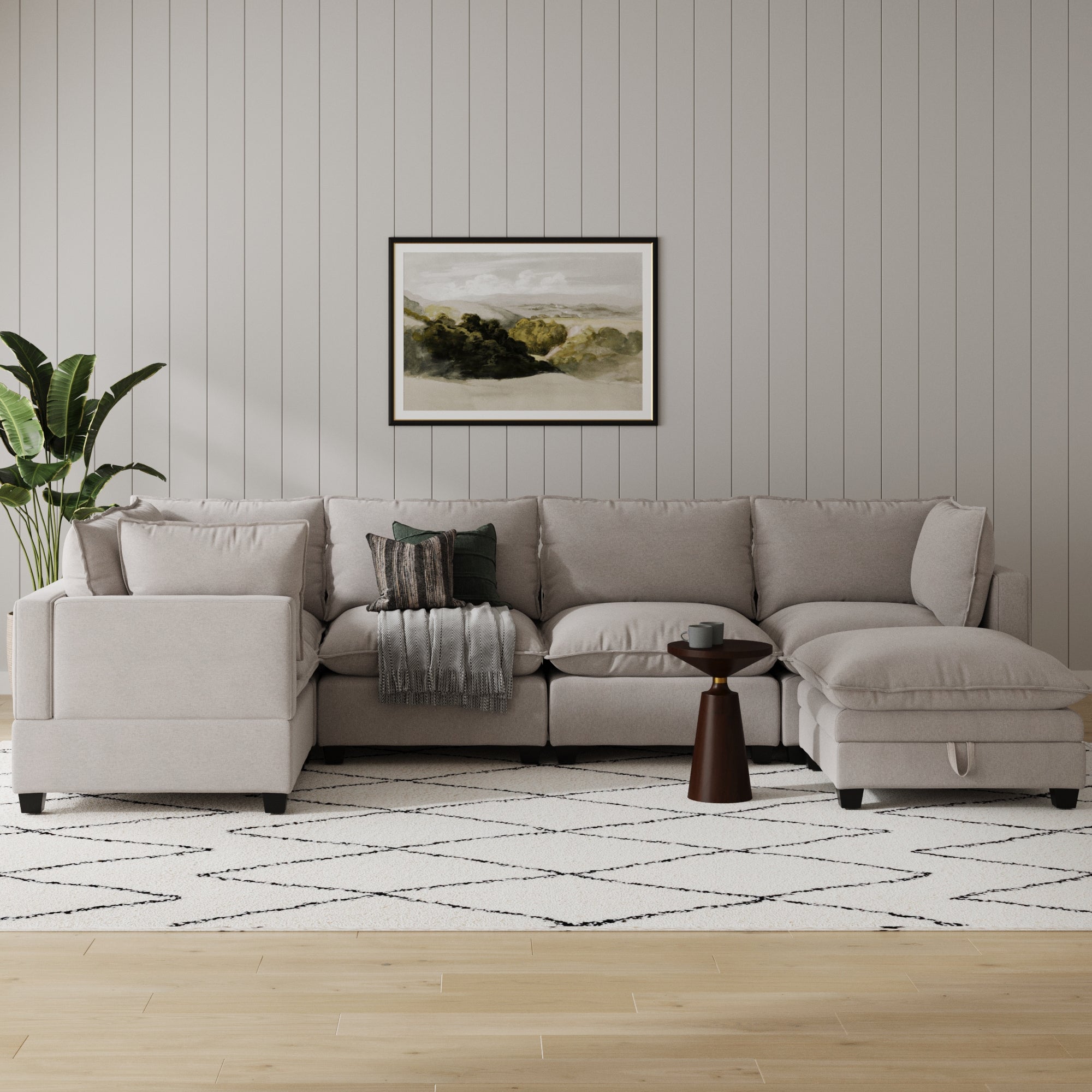 Soft Fabric 5-Seat Sectional Cloud Sofa Couch & Storage Ottoman Gray