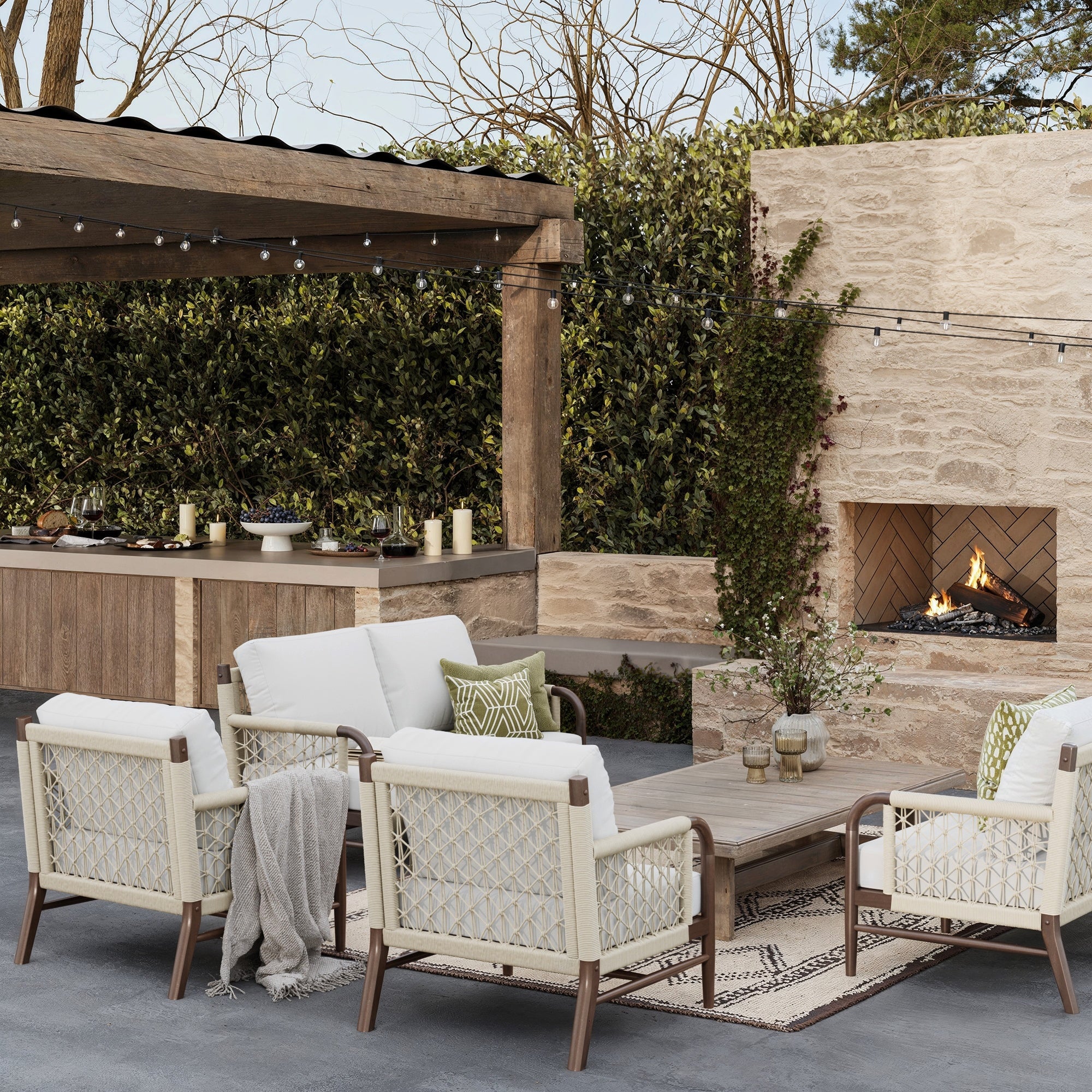 Introducing the Luciano Outdoor Set—where comfort meets craftsmanship in your outdoor oasis. With removable. washable cushion covers and high-quality. weather-resistant fabric. this set is designed to last season after season. The solid acacia wood frame adds natural elegance. bringing effortless style and enduring comfort to your patio. deck. or garden.