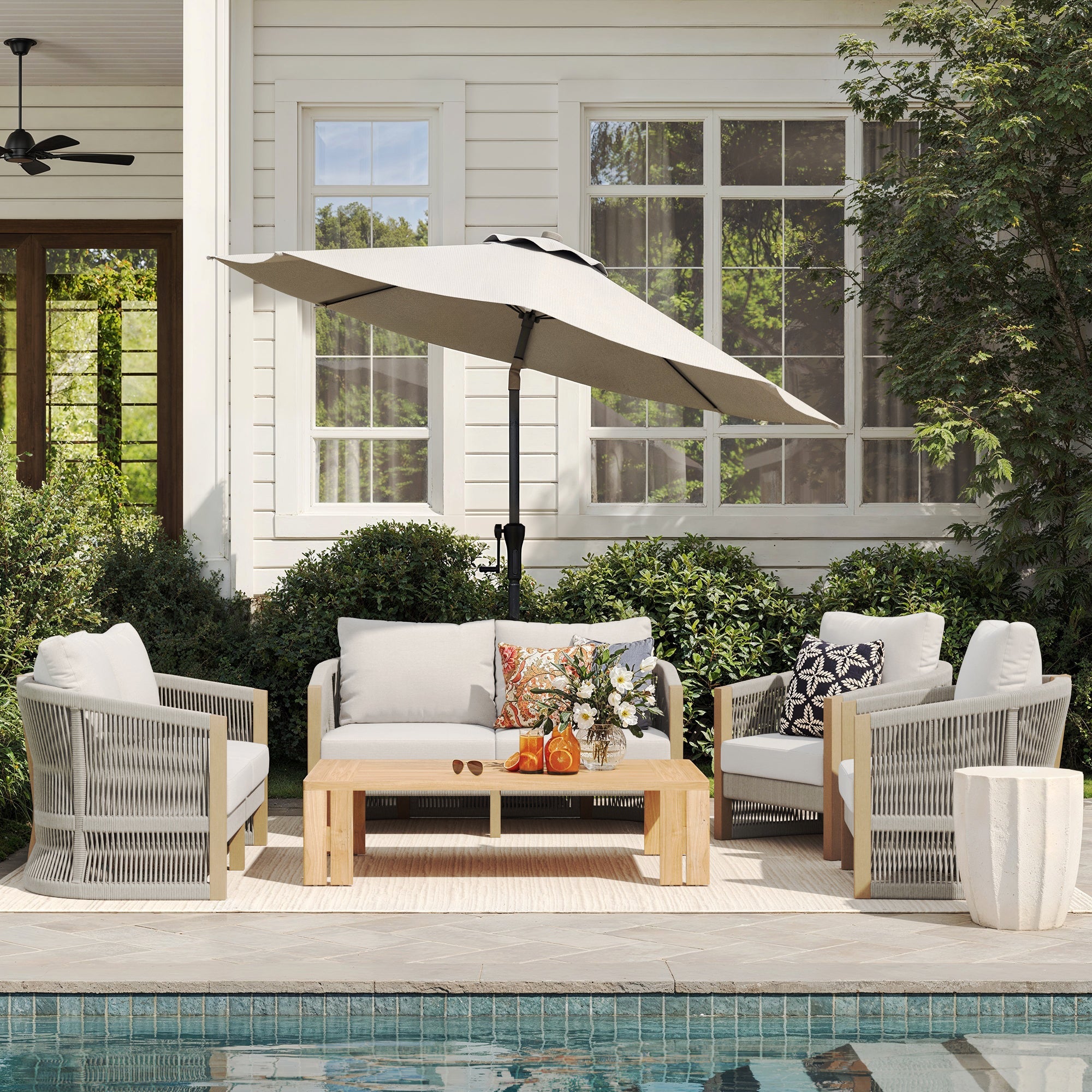 Meet the Jagger Outdoor Set—a beautiful balance of style. comfort. and lasting durability for your outdoor space. Designed with removable. washable cushion covers and weather-resistant fabric. it stays looking fresh season after season. The solid acacia wood frame adds natural warmth and timeless appeal. making Jagger the perfect way to bring cozy charm to your patio. deck. or garden.