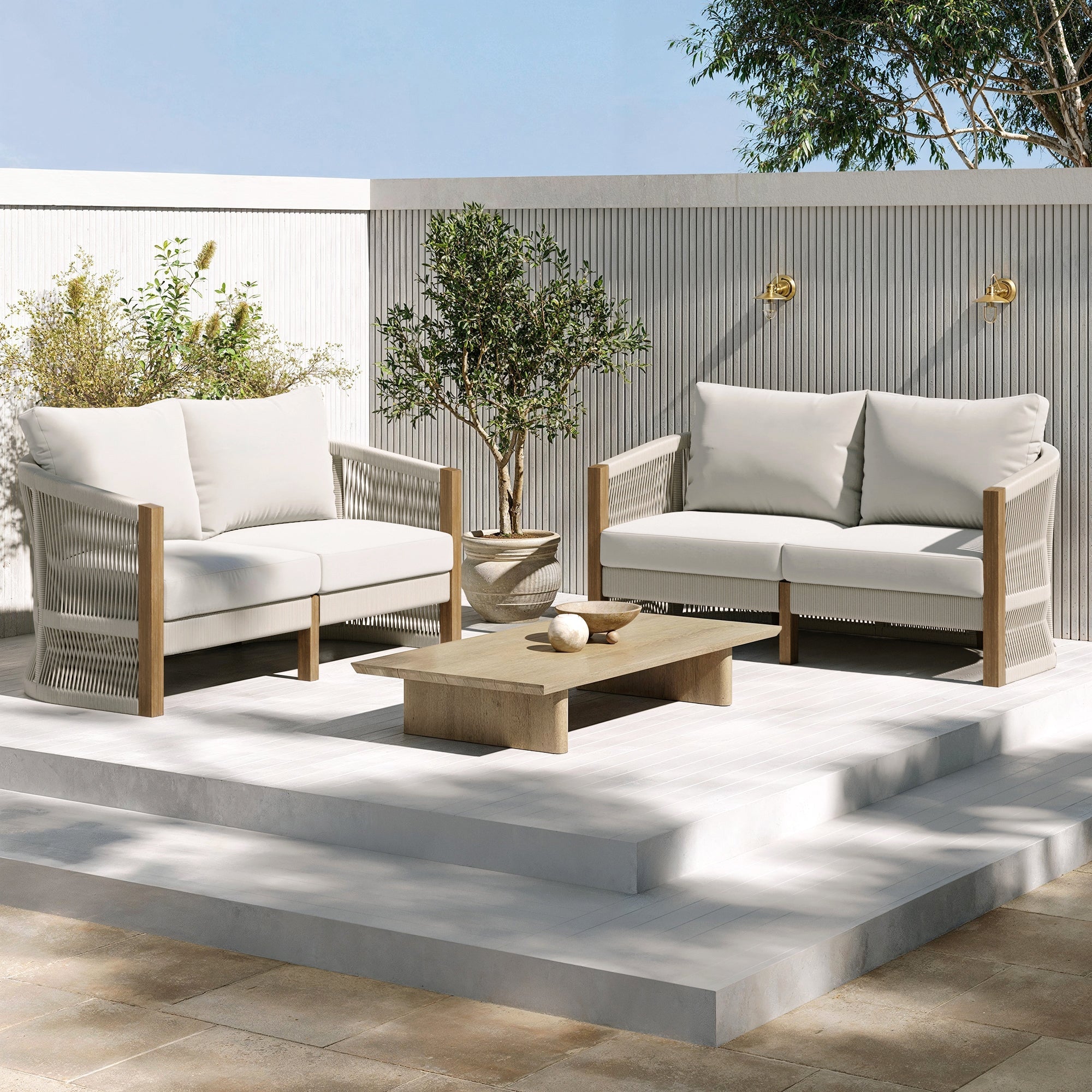 Introducing the Jagger Outdoor Loveseat—the perfect blend of style. comfort. and durability for your outdoor space. With removable. washable cushion covers and weather-resistant fabric. it's built to withstand the elements and stay looking fresh all season long. The solid acacia wood frame adds a touch of natural beauty. Whether you're relaxing solo or pairing it with the Jagger Outdoor Chair for a full set. this loveseat brings cozy. long-lasting charm to your patio. deck. or garden.