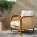 Say hello to the Twila Outdoor Arm Chair—your go-to spot for lounging outside. It's ultra comfy thanks to the plush cushions and tough enough to handle whatever the weather throws at it. with a solid acacia wood frame that's not messing around. Spills? Sun? No worries. The cushion covers zip right off for a wash. and the fabric won't fade or give up when the sun's beating down. The synthetic rattan looks cool and keeps its cool. too—rain or shine. Plus. it's built with rust-proof hardware. so it stays looking good with hardly any fuss. Want the full look? Pair it with the Twila Outdoor Loveseat.