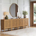 Add a touch of bohemian charm to your space with the Tanner Storage Cabinet. where function meets style. Crafted with a solid wood frame and wrapped in elegant synthetic rattan. this piece offers both durability and a breezy. open weave design. The light golden oak finish adds warmth. making it a perfect match for your relaxed. cozy vibes. Inside. an interior shelf provides the perfect spot to tuck away your treasures. keeping your space both chic and clutter-free.