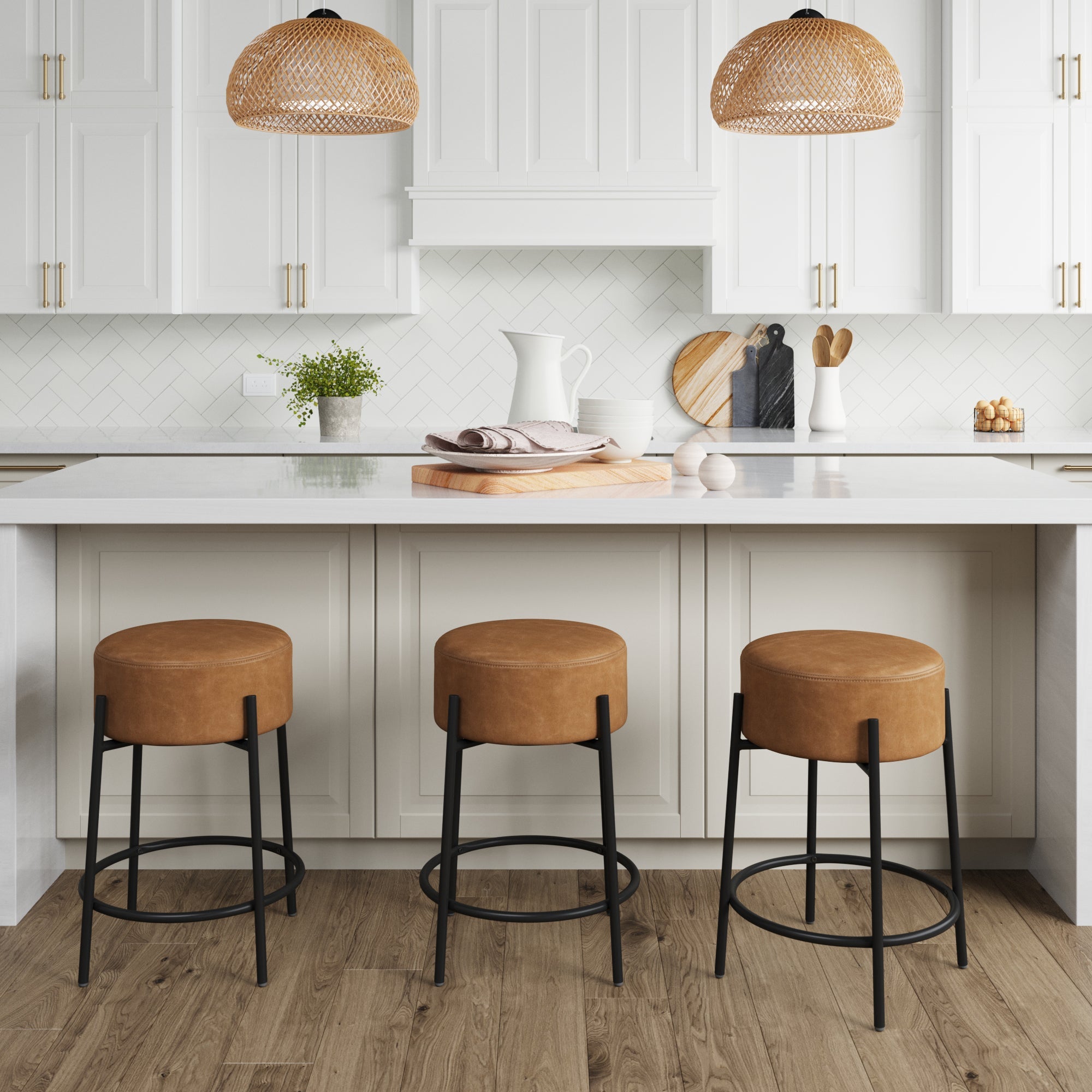 Meet Isaac. the bar stool you'll never want to get up from. With a soft padded seat covered in our gorgeous Italian Turin light brown faux leather. Isaac is the perfect combination of form and function. The contrasting black metal frame with built in footrest keeps your legs comfortable as you sip on that end-of-day rosé. Its 24” height means it will fit perfectly at counter height. And with a 15 minute assembly time. your kitchen will gorgeous in no time. with almost no effort! We love that for you.
