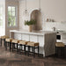 Crafted with a saddle seat shape. the Harvey Bar Stool ensures maximum comfort for extended seating. making it perfect for leisurely meals or casual gatherings. Whether you're enjoying a quick morning coffee or hosting a dinner party. the Harvey Bar Stool will elevate your seating experience with its style and comfort. It features a woven seagrass seat that brings a natural and earthy vibe to your space. while its black legs with a wire-brushed finish add a touch of modern fun. Plus. the chrome stretcher footrests make the stool sturdy and long-lasting. Bon appétit!