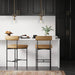 Meet Dahlia. We paired comfortable cushioned seats with cushioned backs covered in low maintenance vegan leather for the ultimate bar stool experience. This set of 2 wire frame stools were inspired by mid-century design and will provide an effortless touch to your kitchen or dining area. They have a slim profile to keep your space light and airy. while the matte black frames draw the eye to their durable footrests and made-to-last legs.
