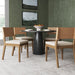 We loved our Linus Bar Stool so much. we had to make a dining chair to match. Our Linus Dining Chair features a thick. durable cushion covered in natural flax fabric. with complimenting rubberwood legs in a light brown finish. It's brushed light brown faux leather back ensures that the shape of the backrest stays intact over many meals. Linus adds comfort and style to dining room or breakfast nook with its clean modern lines and textured fabric. And with an easy 20 minute assembly time. you'll be enjoying that pizza from your new dining chair in no time!