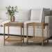 Meet Hayes. Organic. open. and airy. The clear tempered glass top and open design of this end table add visual space to any room and make it a great solution for small spaces. The solid wood frame with a light brown. wire-brushed finish and rattan shelf on the bottom add a natural touch and give you a chic boho feel. Place Hayes beside your sofa as an end table styled with an accent lamp. decorative coasters. and personal touches or use it as a nightstand and add a jewelry dish and some of your favorite reads! Did we mention easy assembly?