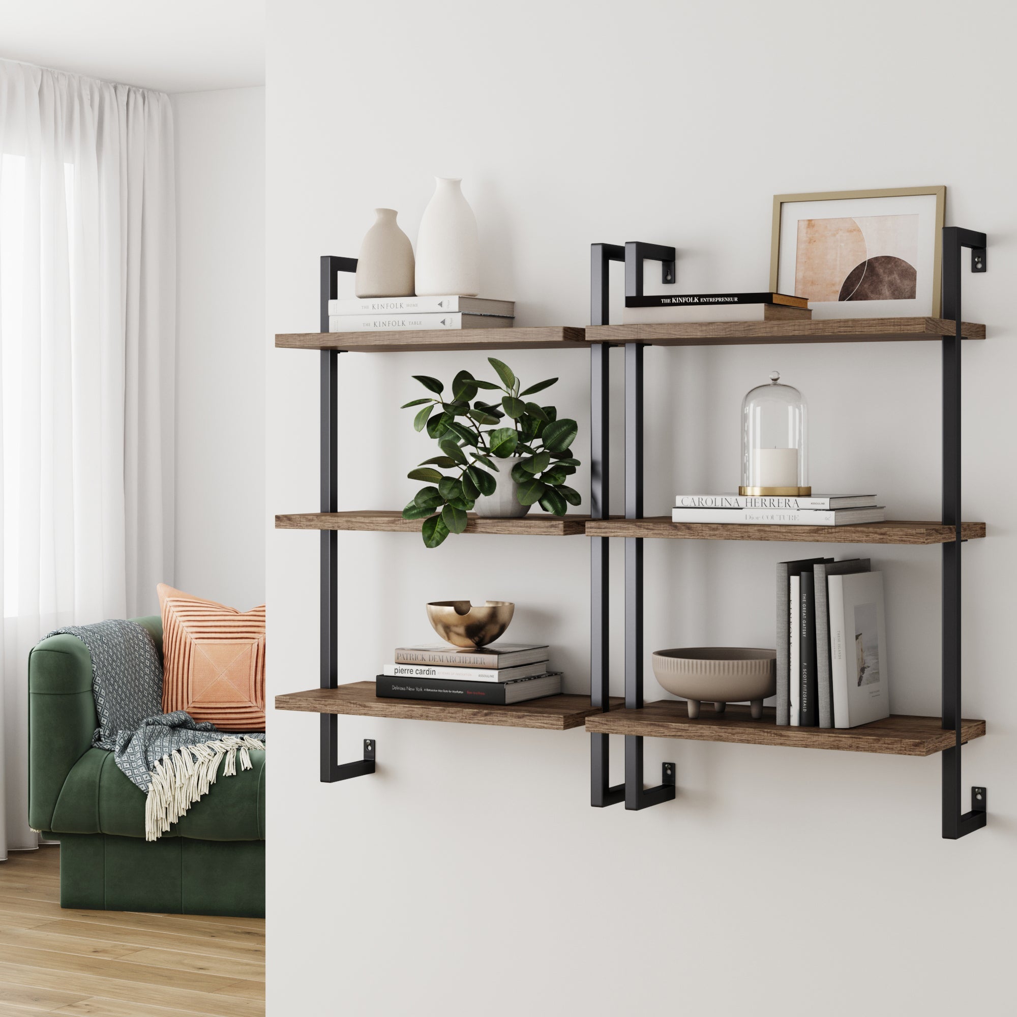 Modern glam and functional flair come together to create the Theo 3-shelf bookshelf. Its charming floating design has us on cloud nine and we're not coming down anytime soon! Three shelves give you plenty of options to show off photos of you and your dog in matching outfits or framed polaroids from your travels abroad. Great for small spaces or apartments. Theo's compact design allows for flexible varying heights and ample storage without the clutter. Its frame is made of durable metal with a brass powder coat finish and has a wall mount bracket with 2 screw holes each for added security to the wall. And best of all. it takes less than a Netflix episode to assemble (approx. 25 minutes!)