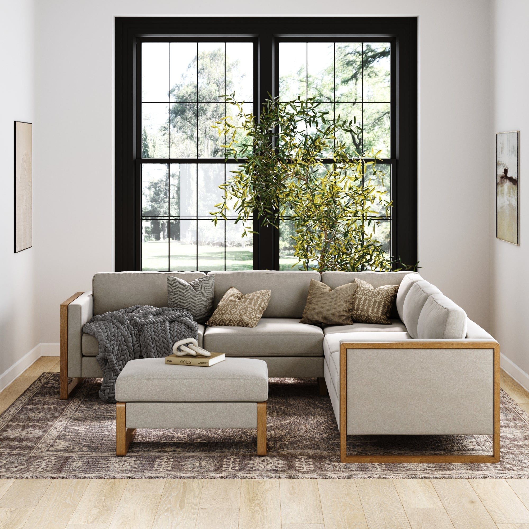 Elevate your living space with the Madison L-shaped 5-seat sectional sofa and ottoman set. With multiple sofa sizes and configurations to choose from. you have the flexibility to customize your perfect arrangement. whether you prefer a cozy loveseat or a spacious sectional. The collection's wire brushed leg finish and wood accents lend a touch of sophistication. Plus. its plush back cushions are designed for the ultimate Netflix experience. With supportive springs both in the cushions and frame. these sofas are practically saying. "We're here for the long haul!" So. go ahead and sink into the softness without a care in the world. because these sofas are all about long-lasting comfort and durability.