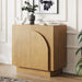 Meet our Iris Storage Cabinet! Inside. discover a handy closed storage shelf and ample storage space tucked behind its distinctive arched cabinet doors. The interior shelves are adjustable. allowing you to customize the storage to your needs. Crafted from wood. the natural material adds warmth to your space. though it's important to note that natural wood can have variations in wood grain. making each piece one-of-a-kind. Whether you place it in your bedroom. living room. or dining room. the Iris Storage Unit not only provides functionality but also enhances the overall ambiance of your living space with its elegant and calming design.