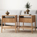 Wood Nightstand with Drawer & Seagrass Storage Light Brown (Set of 2)