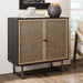 We've got all the heart eyes for Kova! Kova features two natural rattan cabinets contrasted with a black oak wood frame and handles for an organic texture that balances the sleek profile. This cabinet effortlessly blends beauty with functionality. Use it in your entryway to greet guests. in the living room to display your record player. or as an elegant addition to a dining room. Open the front cabinets to reveal two internal shelves that are adjustable and will help keep any room looking organized!