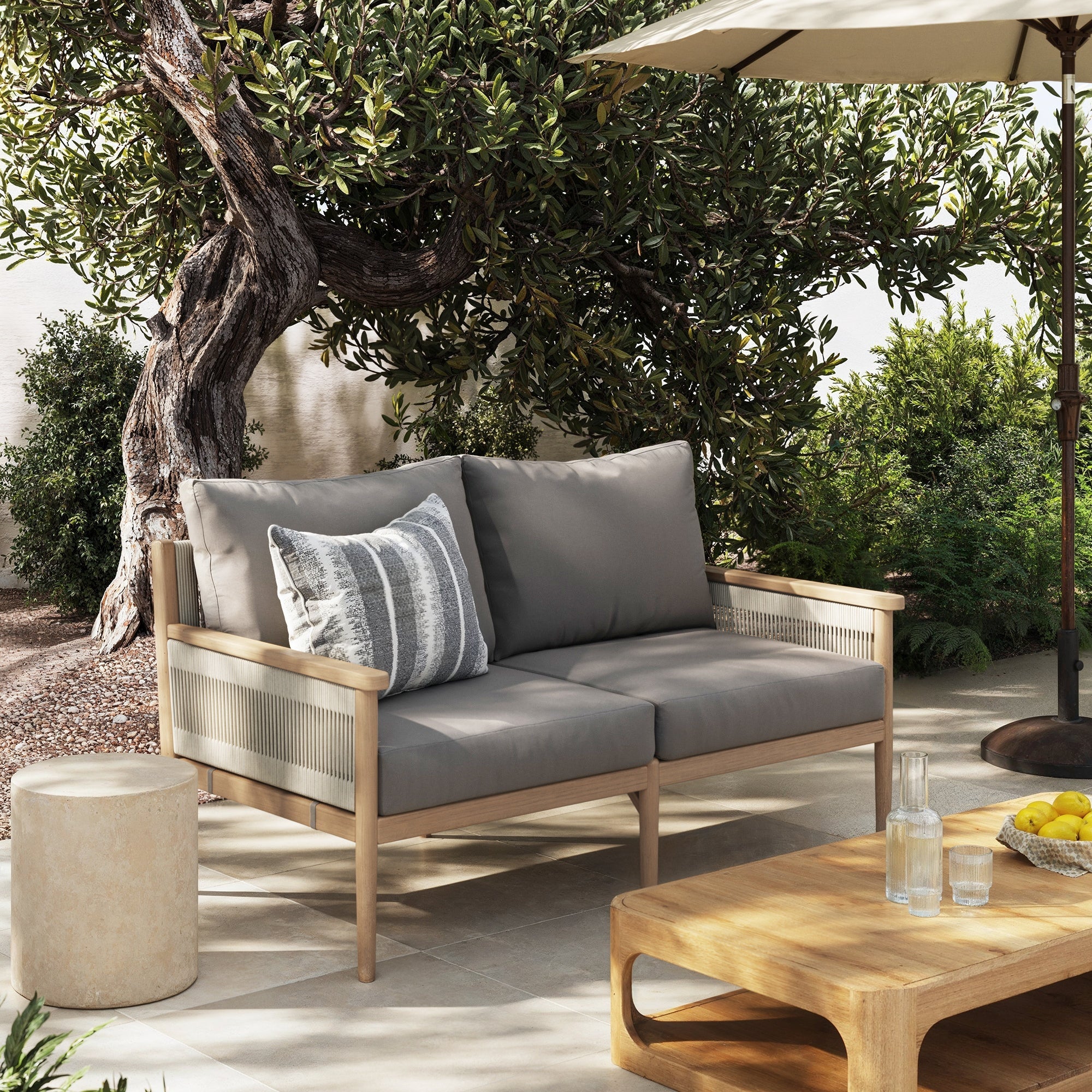 Outdoor Wood & Rope Patio Loveseat Medium Gray