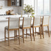 Meet the Kayden counter height bar stool. your new favorite spot to kick back and relax! Crafted with a sturdy solid wood frame. this chair is built to handle everything from sunny afternoons to starry nights. The woven rope backrest adds a breezy. stylish touch. while the plush upholstered cushion keeps things extra comfy. Designed for both indoor and outdoor use. Kayden is just as at home on your patio as it is in your living room. And since it's made from natural wood. no two chairs are exactly alike—each one has its own unique color and texture. Whether you're sipping coffee or soaking up the sun. Kayden is here to keep you sitting pretty!